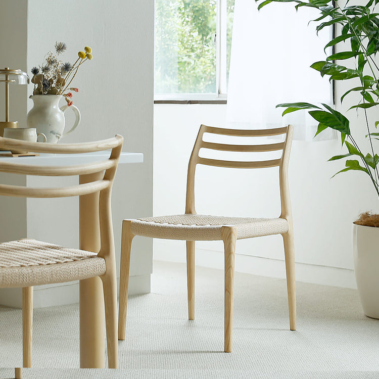北欧の伝統的な名作チェアーのような佇まい。背もたれ部分は、天然木を曲木加工し、体にフィットする丸みのあるデザインとなっています。また座面のサイズも幅46.5cm×奥行き46cmとワイド設計に仕上げていますので、大人の男性の方でも深く腰を掛けることができたりと安定感は抜群。 天然木の落ち着いたナチュラルカラーとペーパーコードのモダンなチェアで、家族やお友だちが集まる食卓を彩りませんか? |