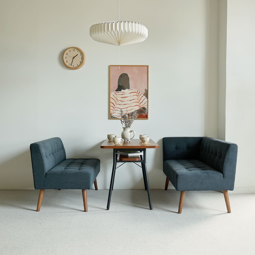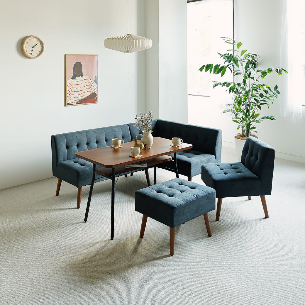 シリーズ家具を組合わせればバリエーションは豊富♪mild(ミルド)シリーズは、1人掛けソファー、2人掛けソファー、カウチソファー、ダイニングテーブル、オットマンを展開。単体でのご使用以外にも、ソファーダイニングで色々な組み合わせができるのも特徴。シーンやライフスタイルの変化に合わせて、L字型で使用したり、テーブルを挟んで向かい合わせて使用したり様々な使い方ができるのも嬉しいポイントですよ♪ |