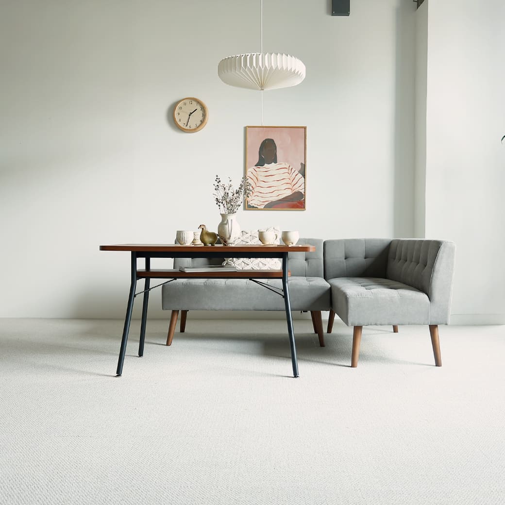 ダイニングでも、リビングでも使える幅110cmのダイニングテーブル。ソファを置く場所といえばリビングが定番ですが、なかには「ソファを置くとスペースがかなり占領されてしまう……」と心配な方も多いかと思います。また食卓にもダイニングテーブルを置くと、どうしてもお部屋の中に家具が溢れかえってしまいます。そこで限りあるスペースを有効活用するために生まれたのがリビングとダイニングで兼用できるソファーダイニング。 |