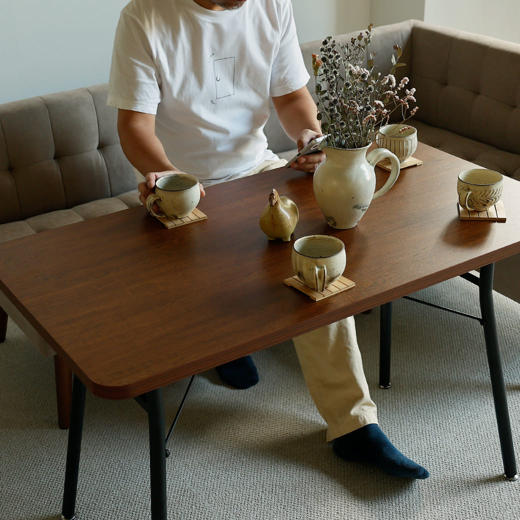 天板に使われているのはメラミン化粧板。傷や汚れに強い素材で、カフェなどのテーブルによく使われている素材となっています。 |