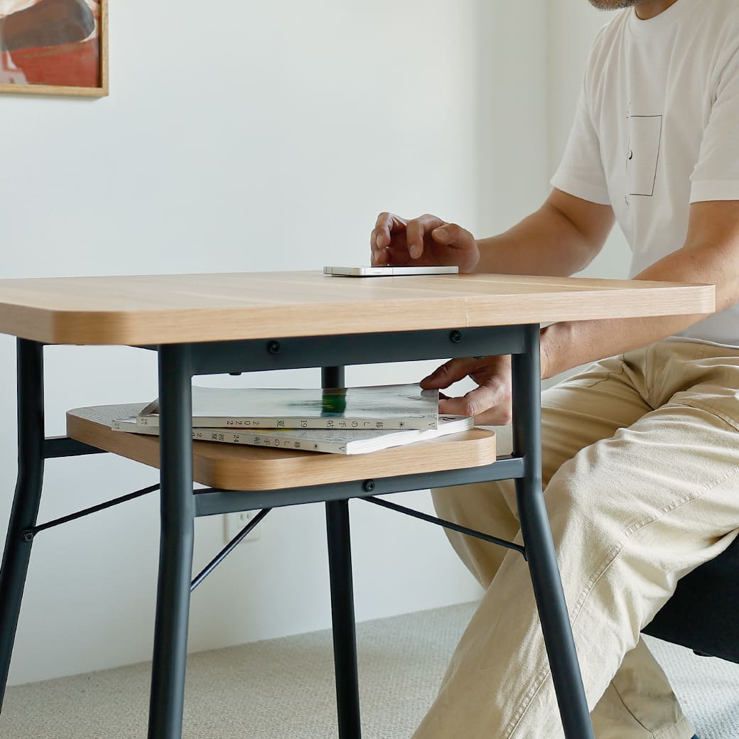 床から天板までの高さは、68cm。棚板までの高さは、51.5cm。ソファーに合わせやすいように通常のダイニングテーブルより少し低めに設計されています。 |