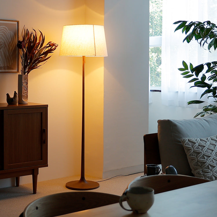 好きな場所で温かみの灯りをお楽しみください。。ファブリックから溢れる優しい光が、くつろぎの空間を演出してくれます。プルスイッチをカチっと引けば、ファブリックシェードから温かみのある光が灯ります。デスクサイドやベッドサイド、ソファーサイドなどの間接照明として活躍するアイテムですね♪またプルスイッチ部分はウォールナットを使用し、ON→常夜灯→OFFの切り替えができますよ。 |