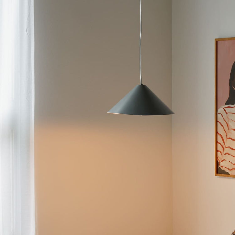 ゆがみが生み出すラインが特徴のgrafプロダクトのペンダントライト、waft(ワフト)。カラーは、ブラック・グレー・ホワイトの3色からお選びいただけます。円形のアルミ板を回転させながら“へら”と呼ばれる 工具を使って成型する「へら絞り」の加工技術で一点ずつ製作されています。人の手によって感覚的にねじられ、空間を漂い、ゆらぐようなフォルムとなったシェードは、光を有機的に切り取り、白熱球が放つ明かりをその温度とともに空間へ伝え、やわらかな陰影のコントラストをつくりだします。 |