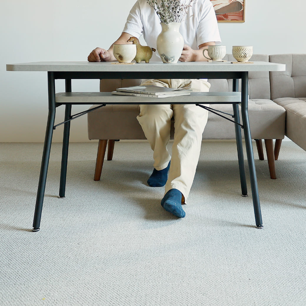 ソファーダイニングでも使えるように、床から座面までの高さは少し低めの42cmとなっています。(モデル身長:約175cm) |
